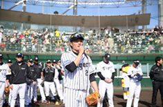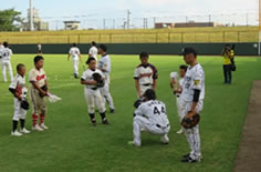 ソフトバンクと行われたウエスタン・リーグ公式戦後に地元の子供たち約100名を対象に、掛布ファーム監督、コーチ、選手全員による野球教室を行いました。