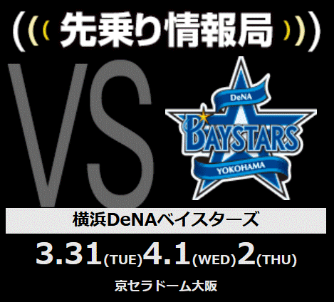 3/31・4/1・4/2 横浜DeNAベイスターズ戦 京セラドーム大阪
