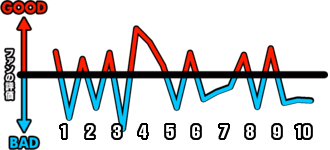 1試合を通じてどのシーンが盛り上がったかを視覚的に伝えます。