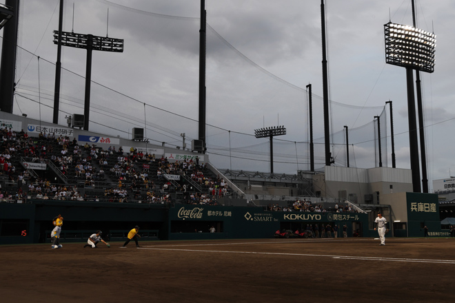 緊張しながらも挑戦し、ナイスバッティングを披露!素晴らしいバッティングにスタンドは大きな拍手に包まれました!