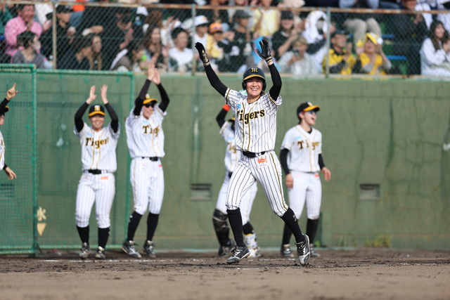 阪神TWは4回、日野口の中安打、正代の四球で一死一、二塁とし、5番西本が逆転となる柵越えの本塁打を放つ。その後、更に四球2つと安打で満塁のチャンスをつくり、前田の左中適時打などで3点を追加、この回一挙6点を奪い、試合をひっくり返す。