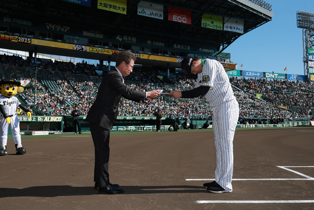 23日(日・祝)、阪神甲子園球場で開催した「ファン感謝デー2025」にて、9月27日(土)阪神甲子園球場での対中日ドラゴンズ戦で「公式戦通算150本塁打」を達成した大山悠輔選手の表彰式が行われました。