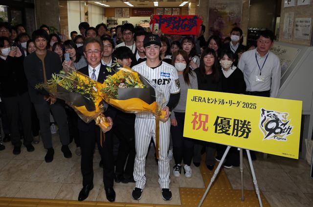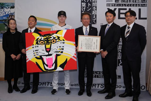 25日(火)、兵庫県庁にて兵庫県スポーツ賞「特別賞」の贈呈式が行われ、粟井一夫球団社長と中野拓夢選手が出席。齋藤元彦兵庫県知事より、表彰状と記念品が贈呈されました。