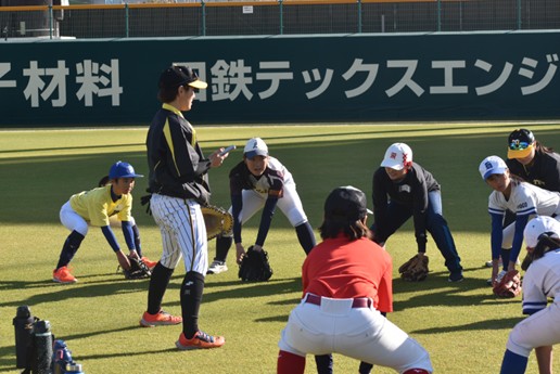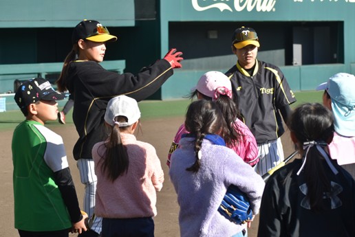 12月13日(土)に日鉄鋼板 SGLスタジアム 尼崎にて兵庫県内の小・中学生の女子を対象に、阪神タイガースWomenの選手・スタッフたちによる野球教室「未来につなぐ トライアルべ-スボール」を開催しました。