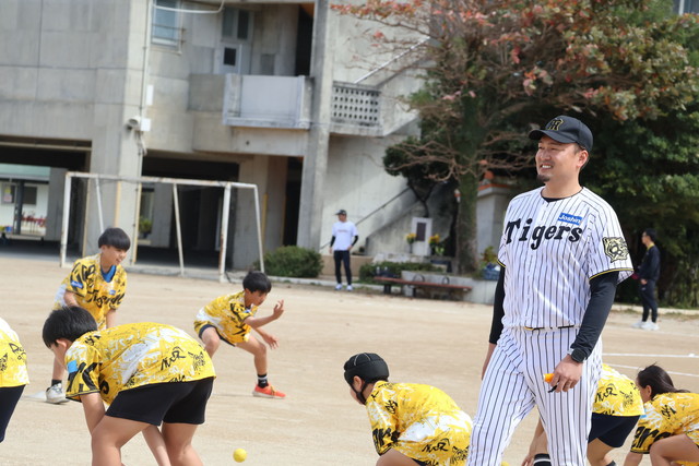 阪神タイガースではベースボールスクール以外に、アンバサダーやOB、タイガースアカデミーコーチを派遣し、小学校の先生に代わって授業を行い、野球に触れ合う機会をもってもらう活動をしております。