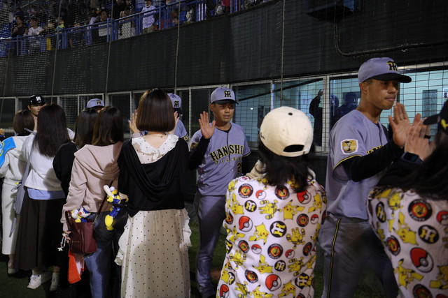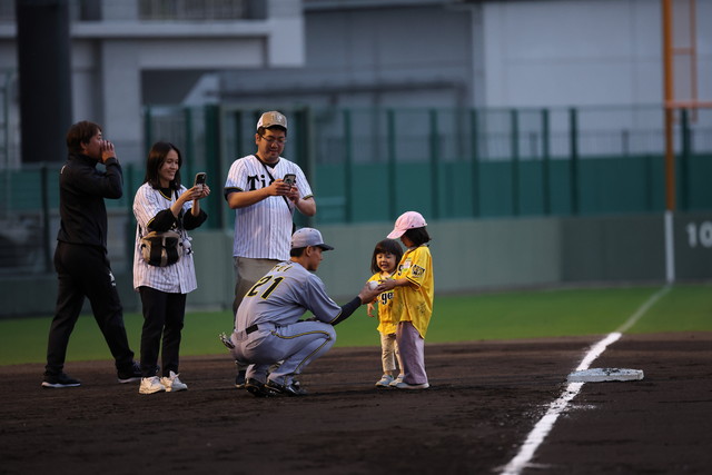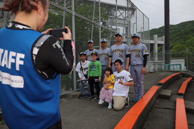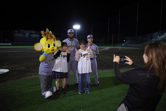 試合前には、グラウンドレベルでの練習見学会、少年少女野球チームとタイガース・インディゴソックスの選手によるキャッチボールクラシック、ミート&グリートを行い、試合終了後には、グラウンドに立った約100名のファンの皆さまと、ハイタッチイベントやヒーロー選手との記念撮影会を行いました。