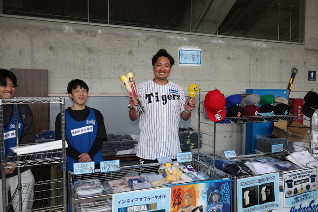 徳島では初めての参戦となった秋山拓巳ベースボールアンバサダーがグッズ売り場の一日店長に就任!地元徳島や全国のタイガースファンの皆さまと交流しました。