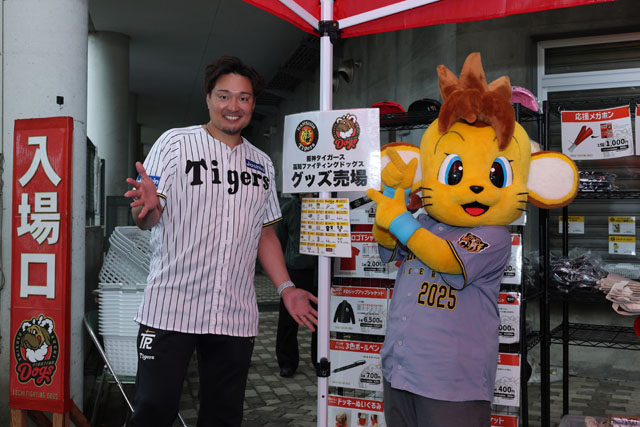 昨日の徳島に引き続き秋山拓巳ベースボールアンバサダーがグッズ売り場の一日店長に就任!地元高知や全国のタイガースファンの皆さまと交流しました。